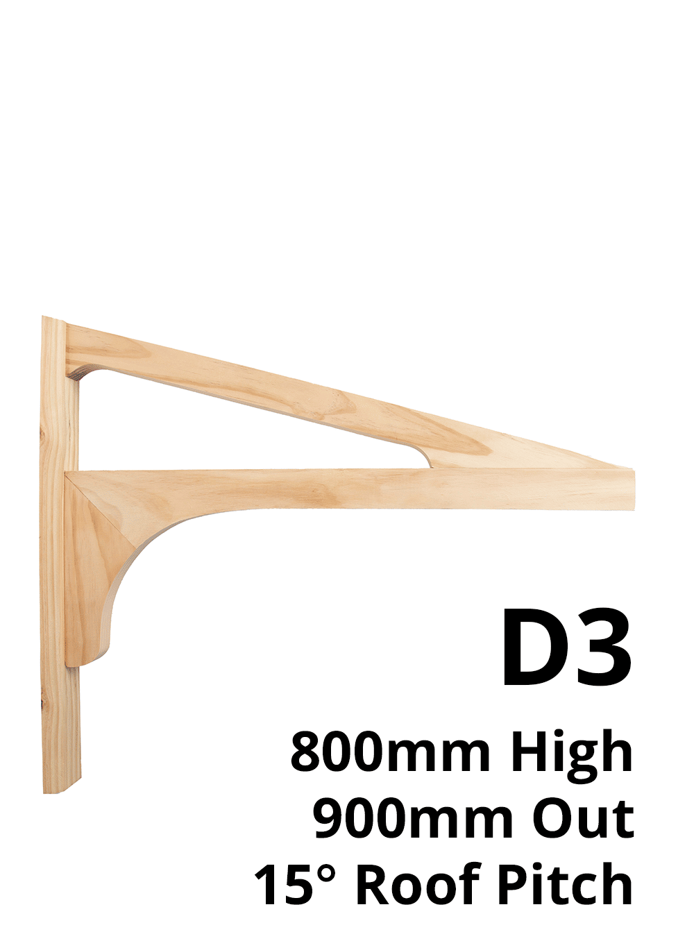 End bracket dimensions – profile D3 at 800mm High x 900mm Out and a 15 degree roof pitch